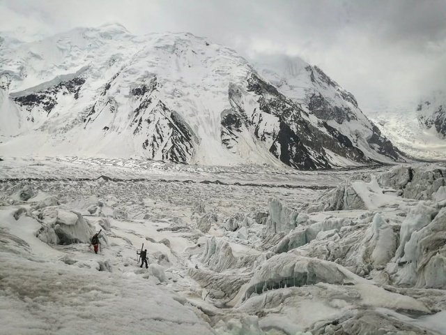 Підготовка до спуску стартує відразу ж: надіти захисні гамаші, приладнати камери, зручніше скласти рюкзаки. «Внизу під нами сніжна нескінченність, абсолютно незвідані кілометри. Перша частина спуску була дуже приємною, навіть незважаючи на те, що після кожних чотирьох поворотів потрібно було зупинятися, щоб перевести подих ».